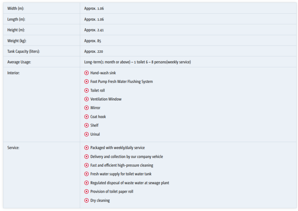 Our Premium Portable Toilets are designed to meet the demands of construction sites, commercial projects, and temporary facilities across Malaysia. Manufactured using High Density Polyethylene (HDPE), these units offer exceptional durability and reliable performance under extreme weather conditions, including intense heat and heavy rainfall.